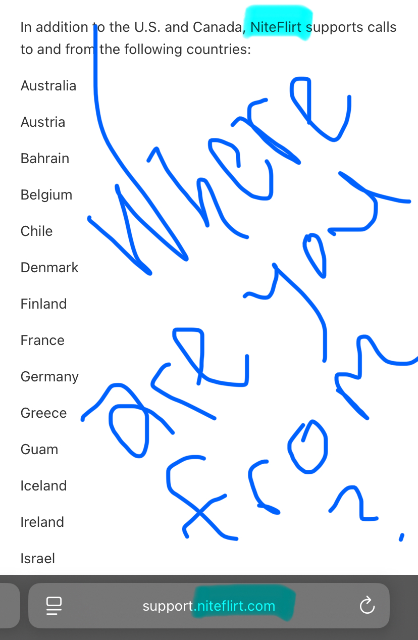 Check the last two photos to see if you’re in a country that accommodates Niteflirt then give Wholesome Domme a call. ☎️